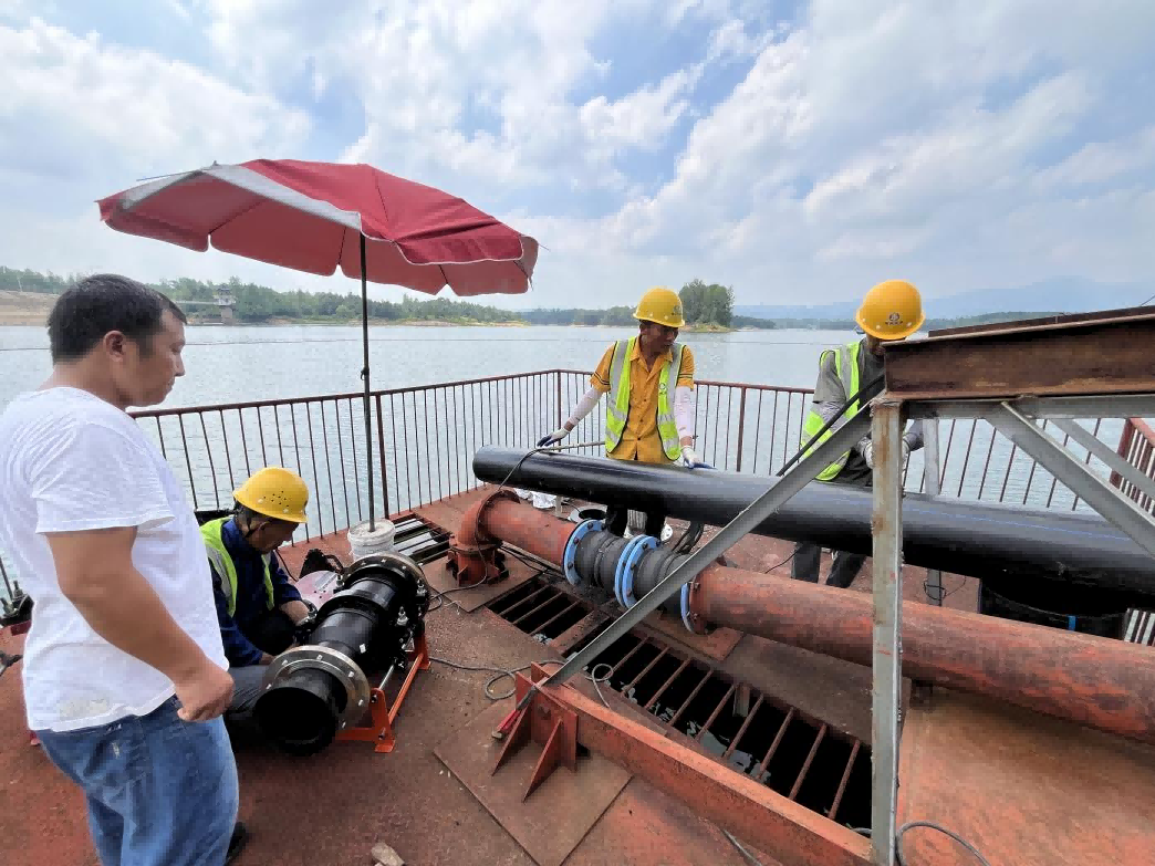 受持續(xù)干旱影響,水庫水位急劇下降,源水取水面臨嚴峻挑戰(zhàn)。公司迅速行動,針對不同情況精準施策:針對沙河口水廠,緊急完成配電設備改造升級,確保取水泵機組在極端條件下穩(wěn)定運行;針對柳林白果河水庫取水點,因水庫水位過低取水困難,果斷將取水口向上游遷移1公里,有效保障源水供應和水質安全;針對殷店天河口水廠制水能力不足問題,緊急增設取水泵機組,提升水廠產水能力,確保供水穩(wěn)定。